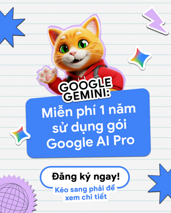 Google vừa chính thức triển khai chương trình ưu đãi đặc biệt: 1 năm sử dụng miễn phí gói Google AI Pro dành cho sinh viên Việt Nam (từ 18 tuổi trở lên) để giúp các bạn sinh viên có trải nghiệm...