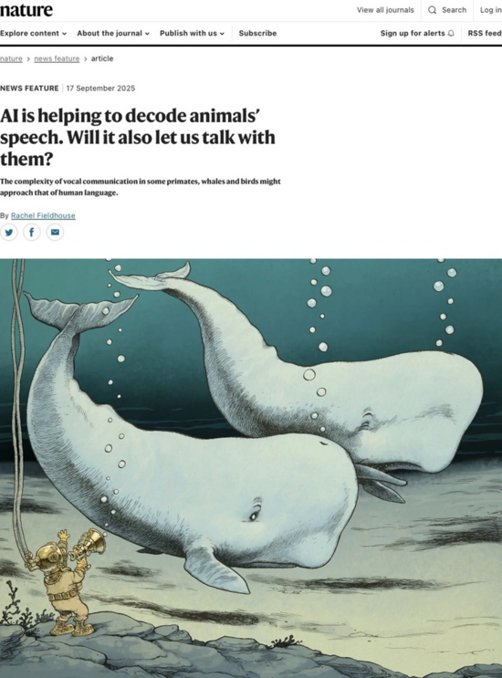 Một bài báo trên tạp chí Nature chỉ ra rằng trí tuệ nhân tạo (AI) đã có những bước đột phá trong lĩnh vực giao tiếp bằng giọng nói của động vật, cho thấy các loài như linh trưởng, cá voi và chim...