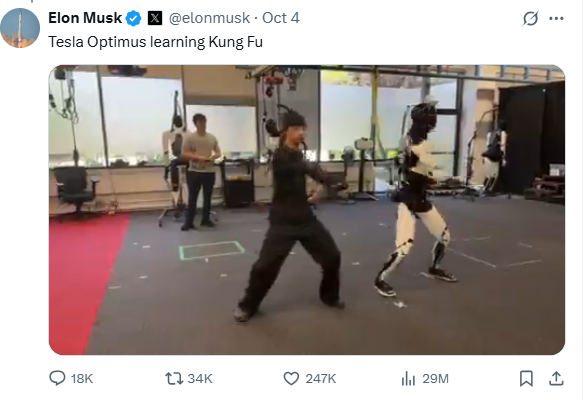 Ngày 4/10, CEO Tesla Elon Musk đã gây bão mạng xã hội toàn cầu khi chia sẻ đoạn video robot hình người "Optimus" thực hiện các động tác kung fu một cách mượt mà và chuẩn xác. Điều đáng chú ý...