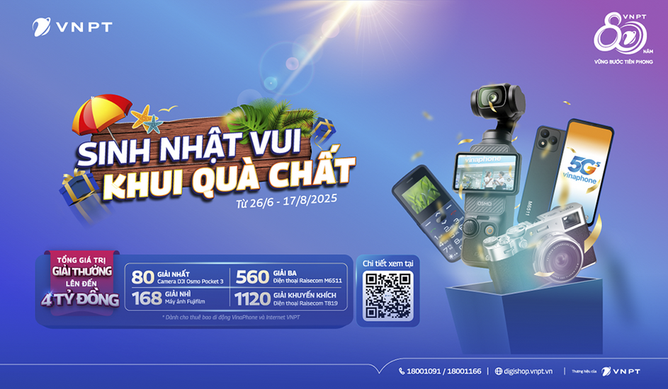 Nhân dịp kỷ niệm sinh nhật 29 năm VinaPhone, VNPT triển khai chương trình “Sinh nhật vui – khui quà chất” với hàng ngàn phần quà công nghệ hấp dẫn, tổng giá trị gần 4 tỷ đồng.
