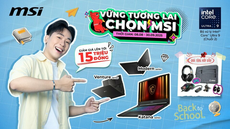 Thương hiệu công nghệ MSI vừa chính thức khởi động chương trình khuyến mãi "Back to School 2025" tại Việt Nam, mang đến hàng loạt ưu đãi và quà tặng giá trị cho học sinh, sinh viên trong mùa tựu...