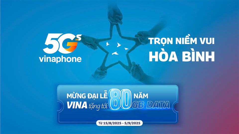 Hòa chung không khí tự hào kỷ niệm 80 năm Quốc khánh 2/9, VinaPhone mang đến chương trình Tri ân - Tặng Data miễn phí với ưu đãi lên đến 80 GB dành cho tất cả khách hàng trên toàn quốc. Chỉ cần...