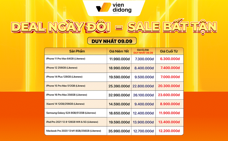 Tháng 9 không chỉ là mùa “Back to School” mà còn mở màn dịp cao điểm mua sắm cuối năm với sự kiện sale 9/9. Tại Viện Di Động, nhiều sản phẩm công nghệ có giá giảm sâu, mang đến cơ hội sở hữu thiết...