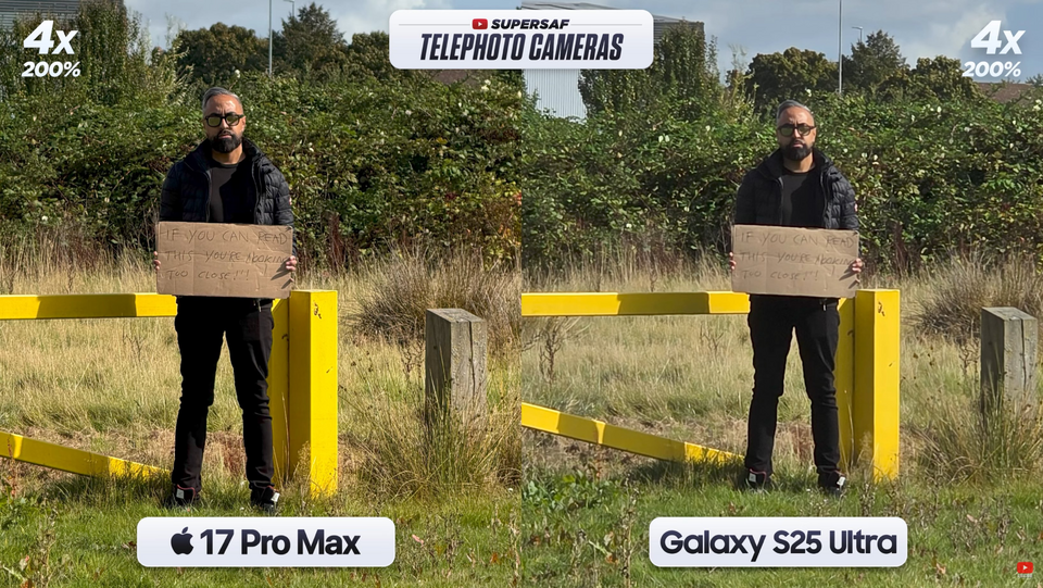 Tài khoản UniverseIce trên mạng xã hội X vừa so nhanh 4 ảnh chụp zoom 4X, 5X, 8X và 10X của hai mẫu iPhone 17 Pro Max và Galaxy S25 Ultra.