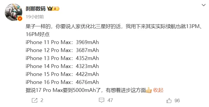 Vào ngày 4 tháng 7, theo blogger nổi tiếng của Trung Quốc cho biết dung lượng pin của iPhone 17 Pro Max mà mọi người đang mong đợi dự kiến sẽ đạt tới 5000mAh.
