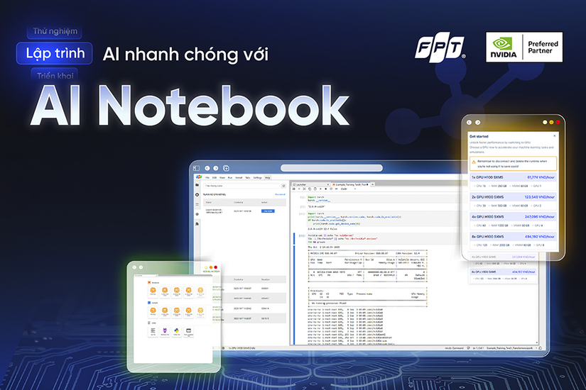 Tập đoàn FPT vừa công bố ra mắt AI Notebook - dịch vụ nền tảng điện toán đám mây cung cấp môi trường lập trình AI, kết hợp với sức mạnh tính toán từ Nvidia GPU, đáp ứng nhu cầu chuyên biệt về...